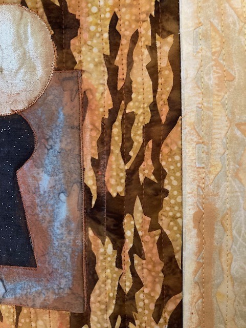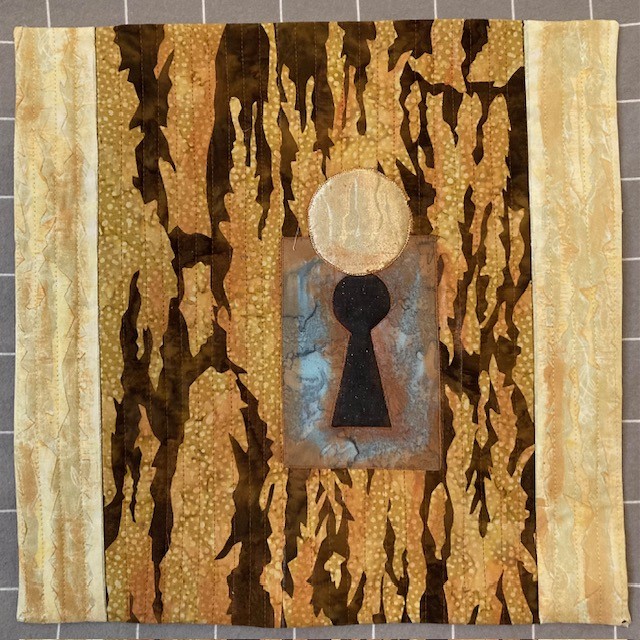 Excellent fabric choice, especially for the door knob and the key hole. Simple quilting is perfect for your quilt, it doesn’t disturb anything, there is enough of texture in your fabrics. Very well done!