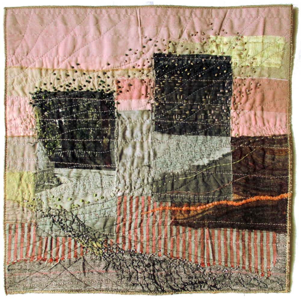 I have loved your series and this is no exception. The antique and vintage fabrics give a warm and soft feel to this piece and there beading and stitching give the feel of new things to come out of the darkness. Wonderful.
