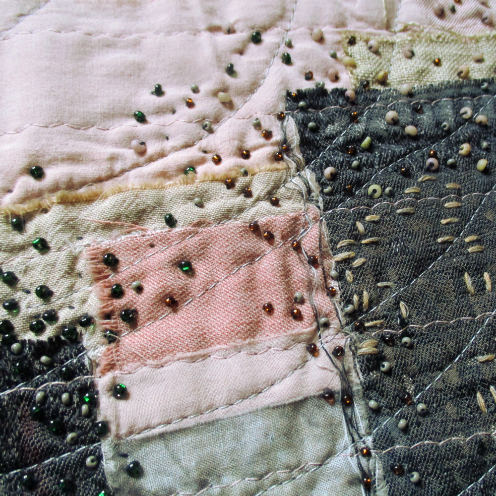 I love the lovely stitched details with beads and combining old fabrics in the creation.