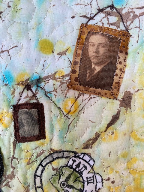 10. You have really outdone yourself with the number of decayed items in this quilt. So many techniques used in one small piece, so many different materials. Love your use of old family pictures here. A great piece!