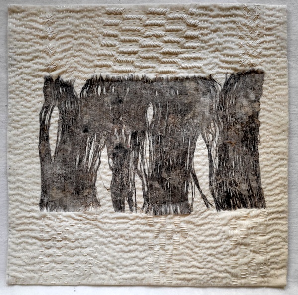 A fascinating experiment and I love your decayed fabric. The hand quilting is absolutely exquisite and provides a stunning background.