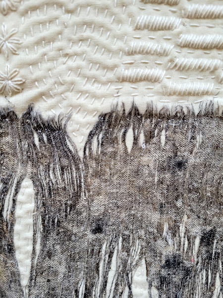 A fascinating exploration of fabric decay. I love that you buried your fabric and allowed it to decay naturally. Detailed stitching really enhances the cloth.
