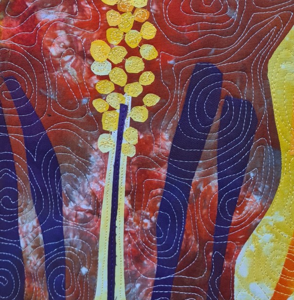 9. A dramatic representation of the inner parts of the flower. The colours and fabrics are bold and are enhanced by the stitching.