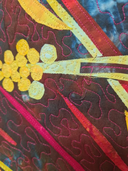 Materials: cotton fabric, hand dying, fused, machine quilted.