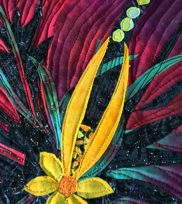 I love your interpretation of Georgia’s flowers. Beautiful composition and colors. Great attention to detail in the stitching. Bravo!