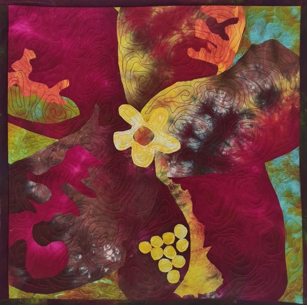 Materials: cotton fabrics that I dyed, fused, machine quilted.