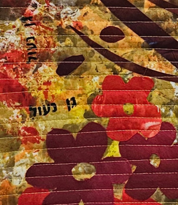 A lovely colourful and rich depiction of the trees and the garden. I like the colours and fabrics you have chosen. A very fitting end to your series