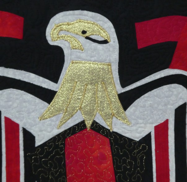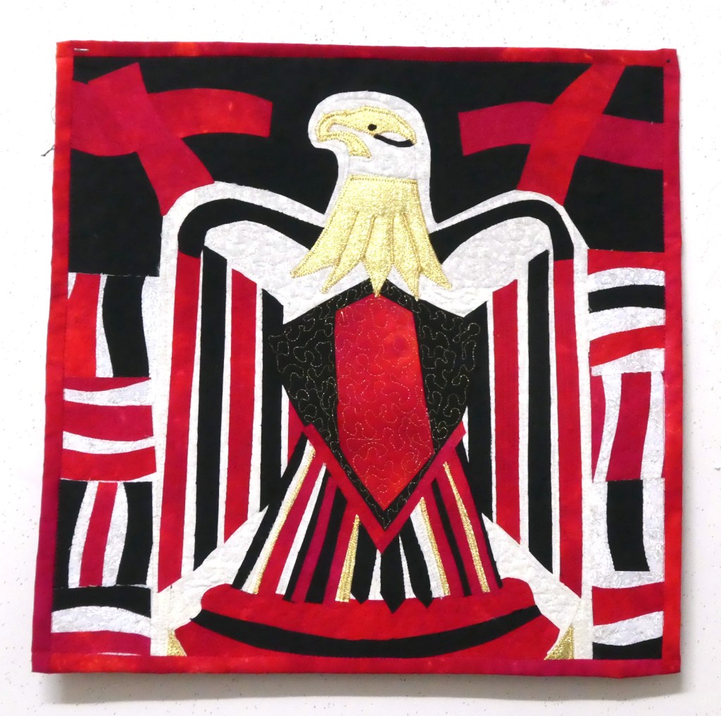 I could not guess the country either ! but what a powerful piece and design ! I love how your eagle is in harmony with the background of the quilt.