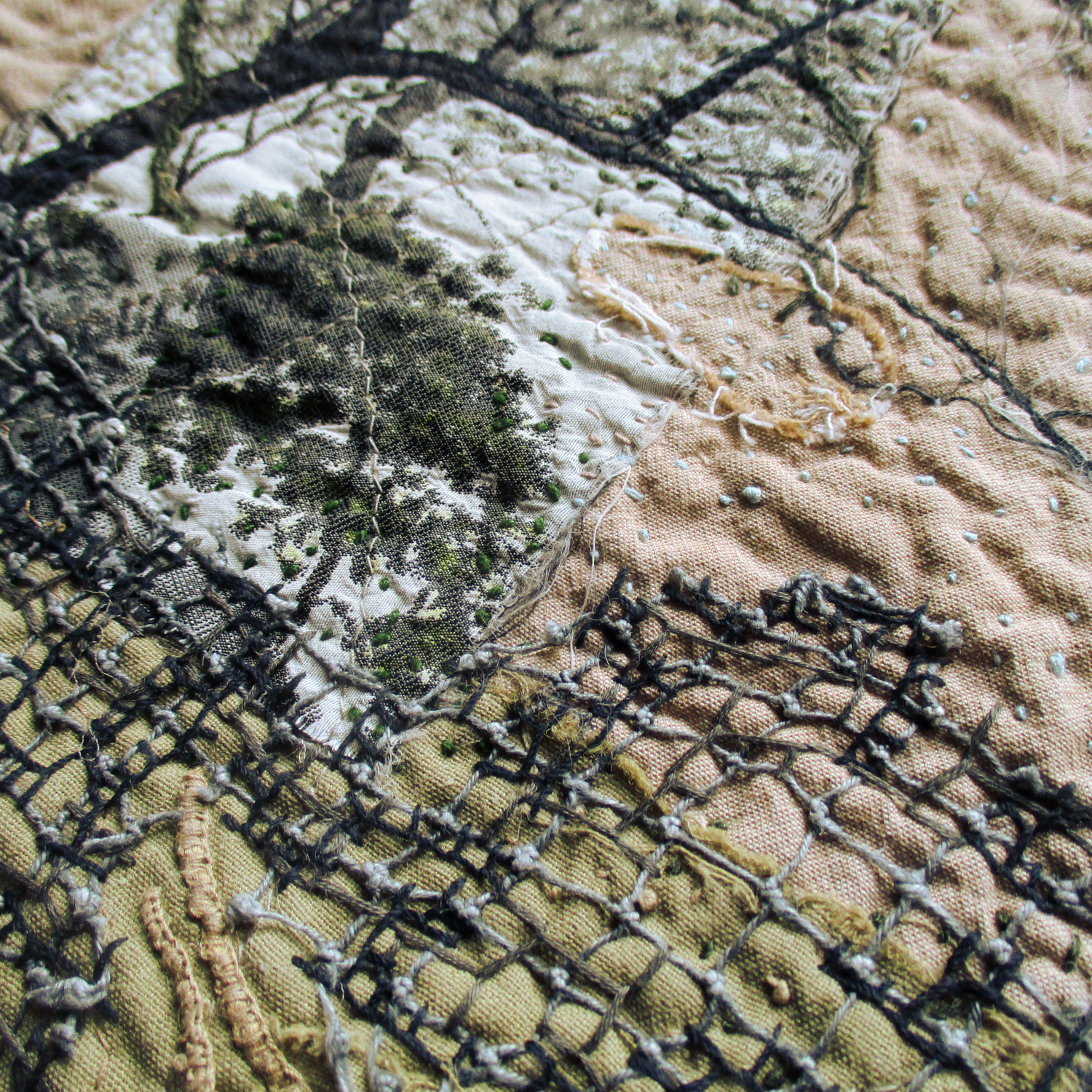 What an emotional and heartfelt subject for youth work on in this series. You were very brave to cut up the family piece but what you have created from it is very beautiful. I love the colours and stitching and I am keen to see how your series progresses