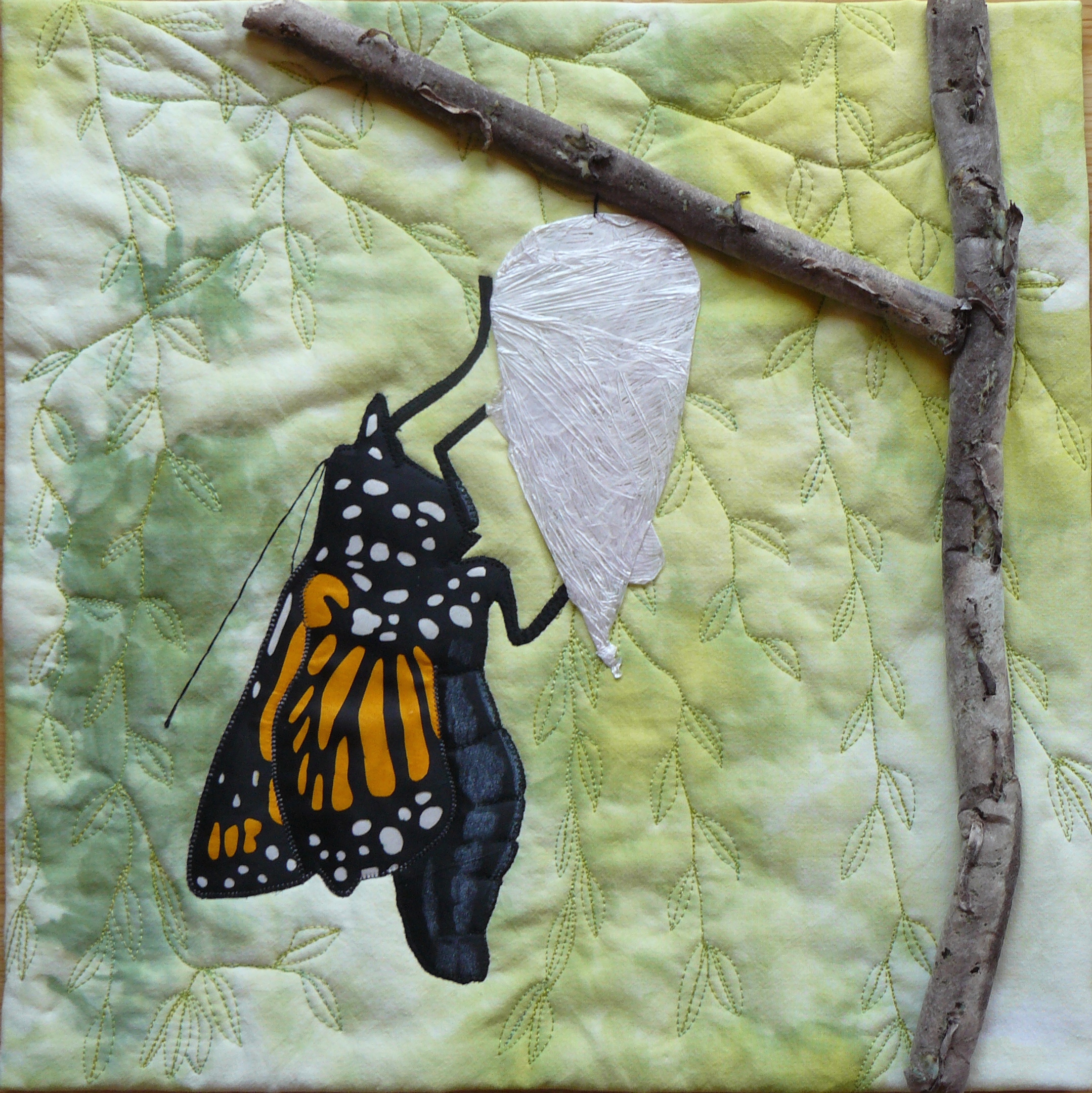 Your innovative techniques to render this subject really caught my attention — especially the twig/branch. I’ve not tried 3-D work at all…but that twig looks very realistic! And…I commend you for using slippery fabrics to make such tiny bits on the butterfly’s wings. Wow!