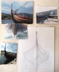 Inspiration : Several years ago we visited Denmark and went to the “Viking ship Museum” in Roskilde near Copenhagen. I was impressed by the size of these huge boats and by the strengh and power that was emerging from them. For my piece I used several of my photos plus one from the Museum collection (Detail of the boat with foam)