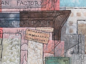Your choice of faded colors, paints and the use of black thread really made the building look abandoned and forgotten. You interpreted your photo onto fabric beautifully!