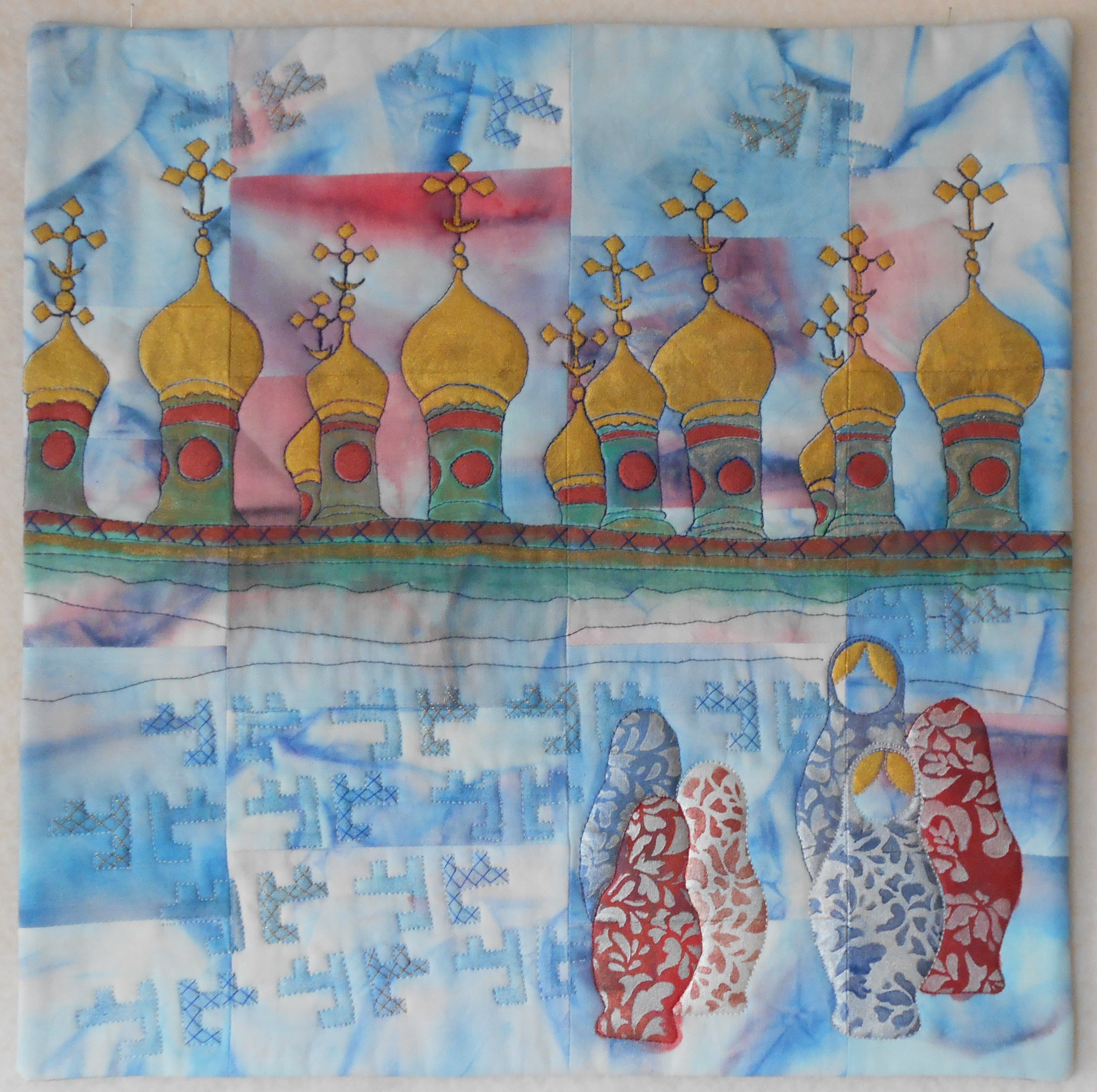 For Horizons I wanted to illustrate the fact that when you are travelling you open your horizons. You meet new people, you enjoy local traditions, learn about new customs and visit beautiful places. It is what my quilt shows and it was my feeling when I discovered Russia.