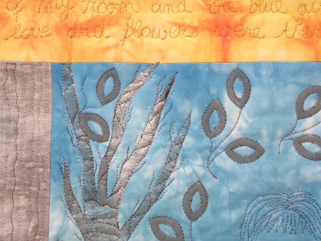 I love the quiet colours that represent the hymn to life, and the texture of the fabric adds to the effect. Beautifully designed and stitched, and a very fitting end to your series
