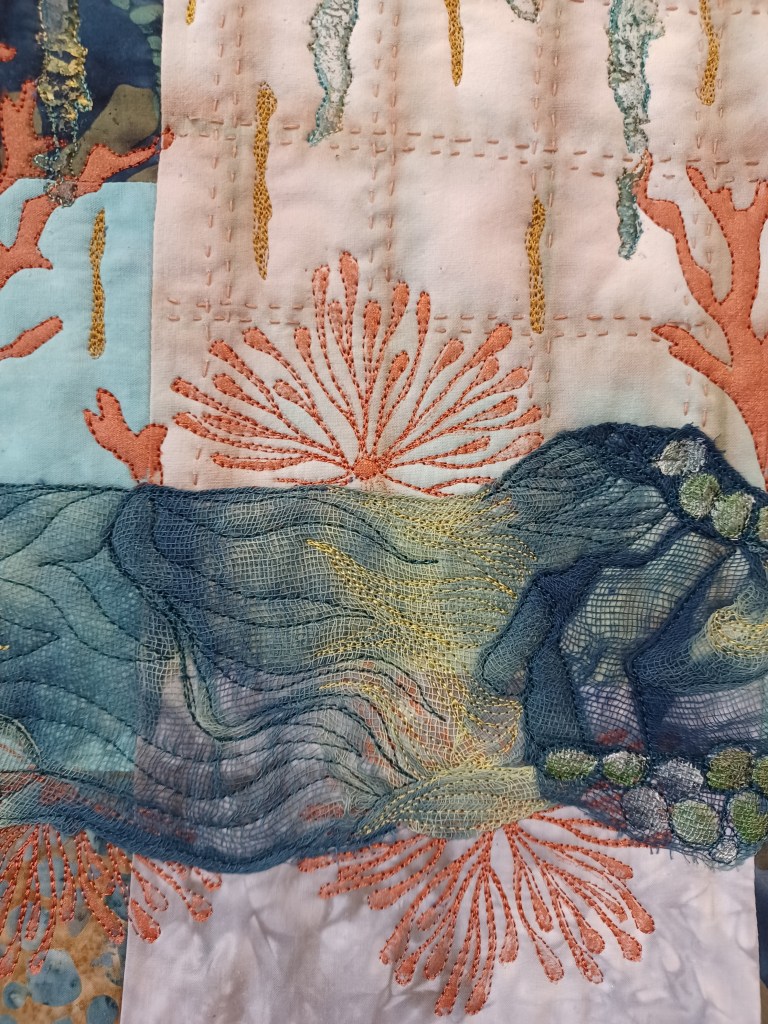 Stunning work, composition and choice of fabrics and colours perfectly assembled. Your undersea world is lovely and relaxing. Chapeau!