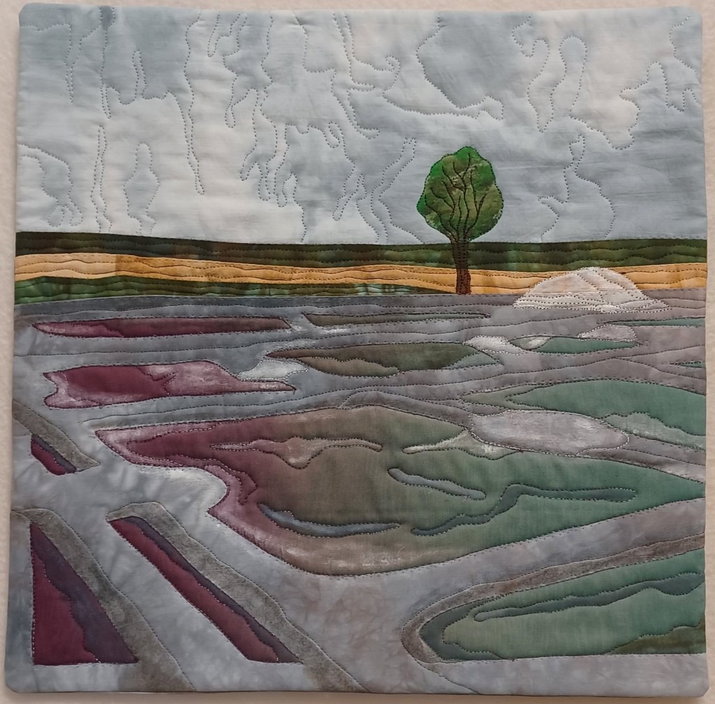 Your applique techniques have created depth in the salt pans and the colours give atmosphere. A calm and interesting composition.