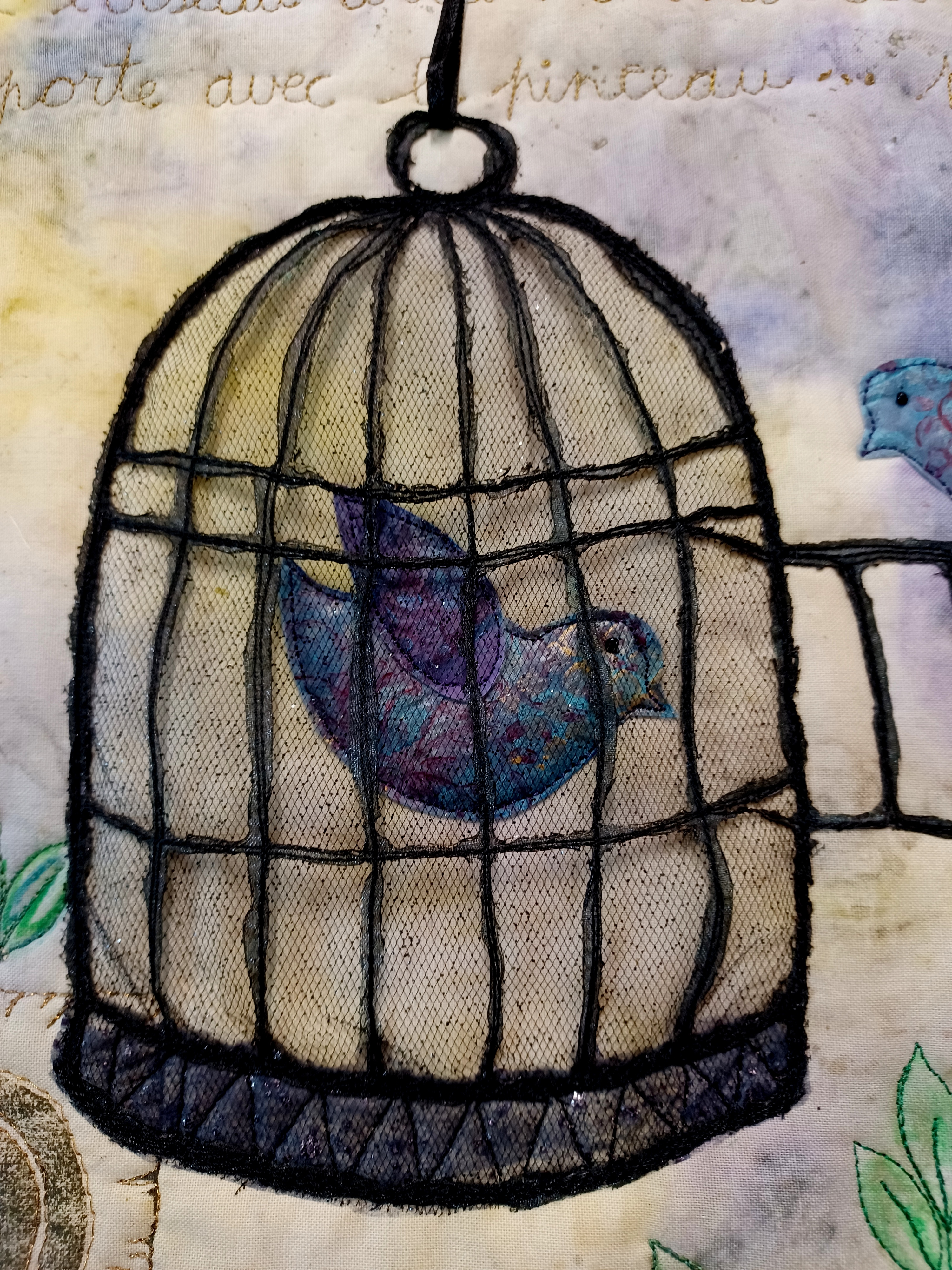 6. I like everything in your quilt: the flowers, the cage, the birds and also how you integrated the poem. Beautiful!