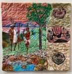 Fifteen by Fifteen is a group of like-minded textile artists from various places throughout the world, we have come together to participate in an art quilt challenge. Our artistic styles vary, but we share a love of art quilting, the desire to learn and experiment, and most importantly share and grow. Every 8 weeks members will make a 15 x 15 inch quilt based on colour play or a theme. The results will be displayed in the Artists Gallery.-