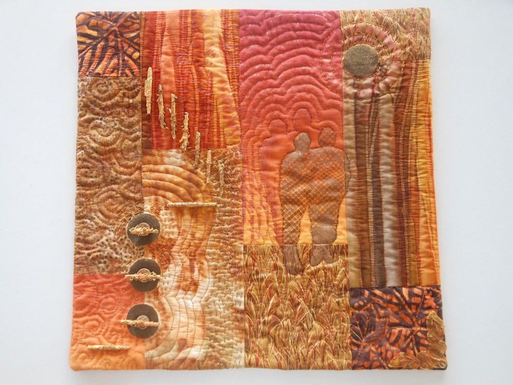 Technique: Piecing, hand and machine-quilting, stencilling, beadmaking.