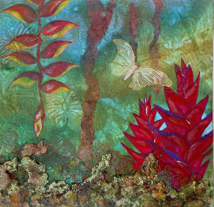 7. Again a lot of techniques in your quilt. Beautiful heliconias. It looks like I’m personaly walking in the rainforest.