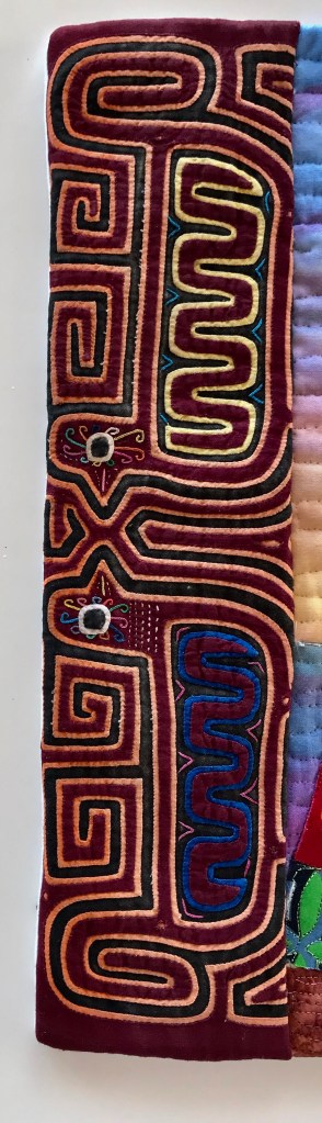 I am in awe of the many techniques you use in all of your quilts and thanks for going into such detail. The mola with the birds is absolutely beautiful and so fitting here. A very fitting finale to your wonderful series!