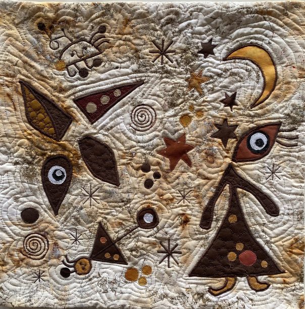 Definitley the style of Miro and your use of ‘rusted’ colours works perfectly for this piece. I love the energy of the motifs and your stitching really brings them to life. Beautiful