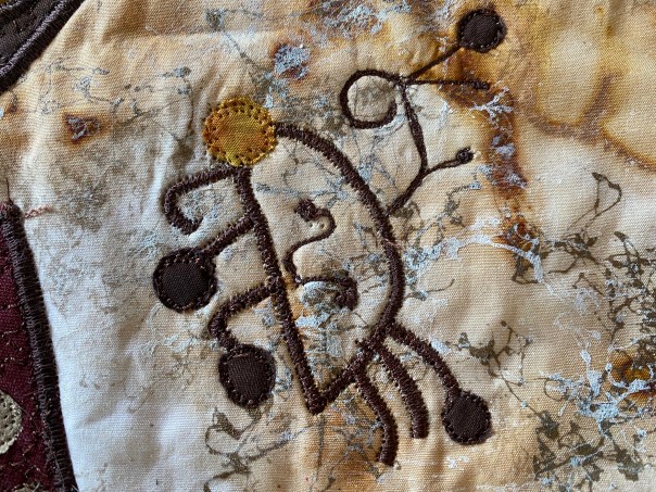 Definitley the style of Miro and your use of ‘rusted’ colours works perfectly for this piece. I love the energy of the motifs and your stitching really brings them to life. Beautiful