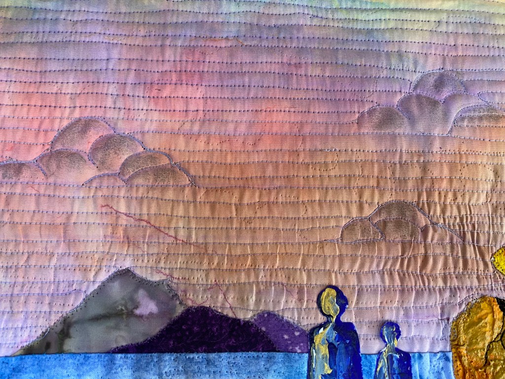 Sea and air are machine quilted and some clouds got a little touch of silver paint.