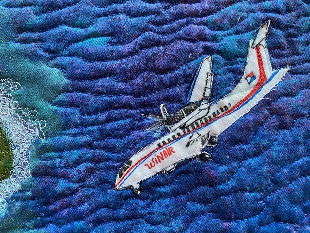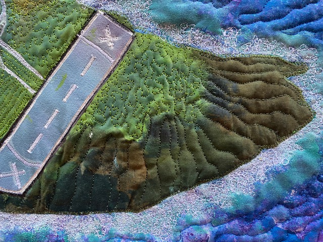 The colours are lovely and the quilting of land and sea is perfect. The runway must be very scary but the little houses are reassuringly welcoming.