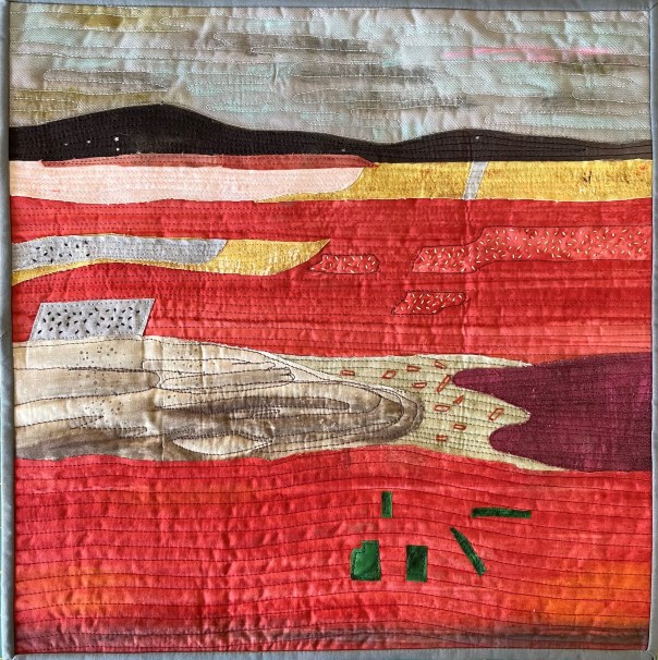 An interesting colour palette; the stitching has helped to define each area. nice work, well done.