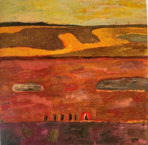 Not only the kibbutzim themselves were a favorite subject of Michael Kovner, so were the fields surrounding them. He painted them in all seasons.