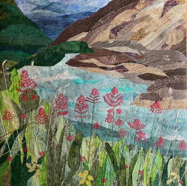 What a beautiful landscape and your depiction really does it proud. I love the way that you have added interest by including the plants in the foreground. Really lovely quilt
