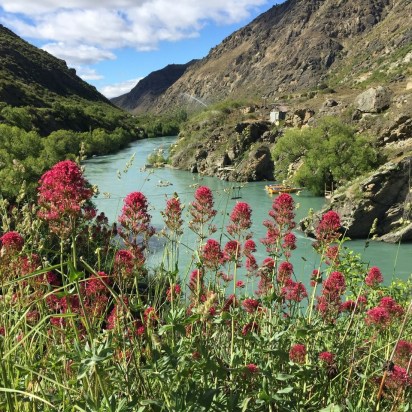 New Zealand’s South Island. The Kawaura River flows eastward between two lakes and passes through a deep gorge.