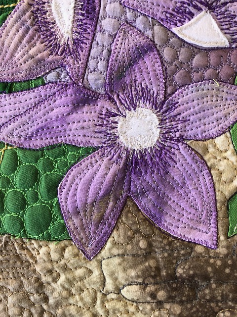 The first thing that came to mind when I saw Mandrake was the scene from Harry Potter and the screeching of the mandrakes, haha. Love the perspective and the tight quilting showcasing the beautiful flowers. Well done!