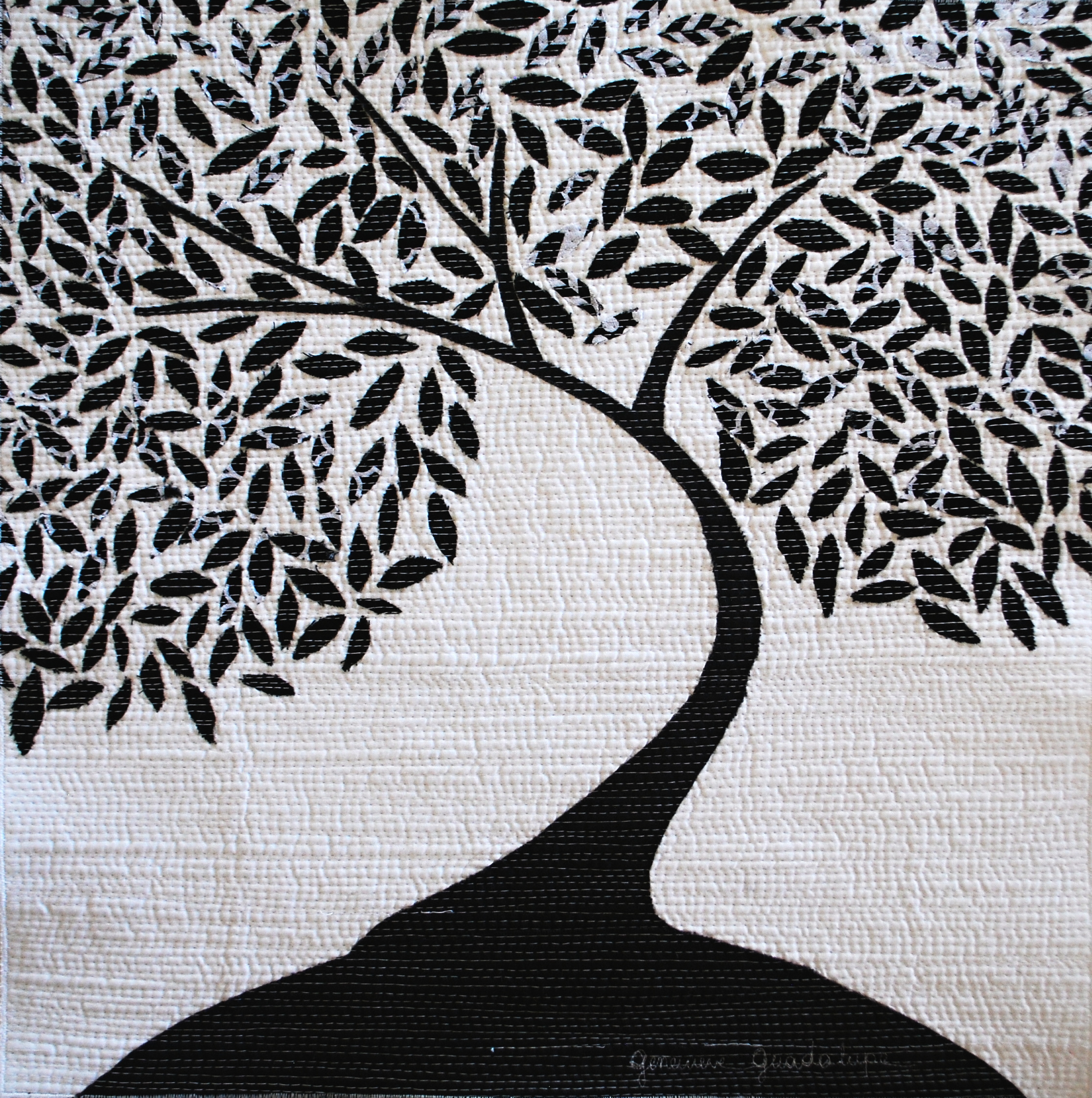 This is a true abstract version of your first tree. Lovely how you used the fabric for this tree. Very effective quilting. Did you fuse the squares on a background?