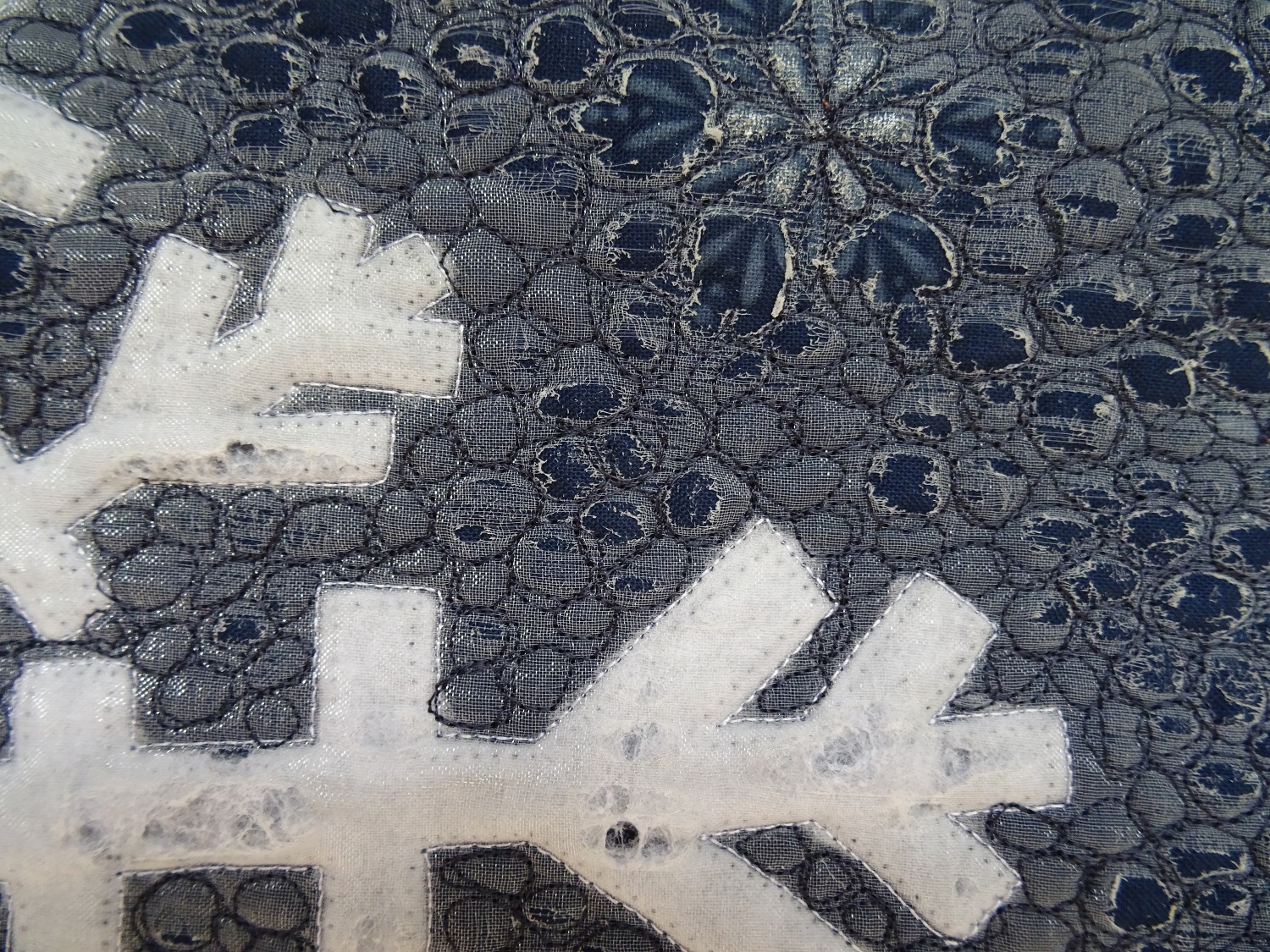 Around the painted ice crystals I stitched a line in free motion quilting.