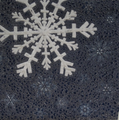 On the dark blue fabric I painted several ice crystals with paint-sticks and a template.