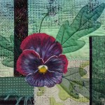 The pansy is made with thread painting. I learned this technique at the workshop of Susan Brubacker-Knapp. At her class we thread-painted directly on the fabric.