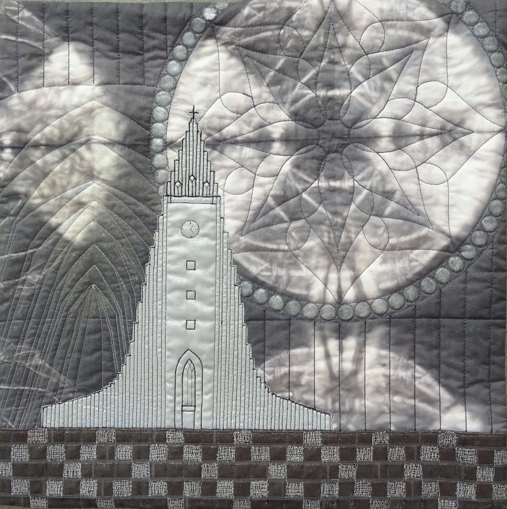 8. Beautiful! What lovely illustration of a special building. The quilting is inspired, especially the ‘window’ in the sky. I remember visiting this church so this brings back some great memories.