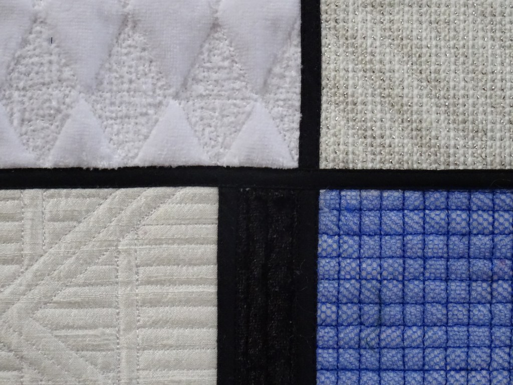 I love the geometric work of Mondrian and your design is perfect. I think that the quilting patterns are a wonderful idea and beautifully carried out. I’m looking forward to seeing the rest of your series. Great work