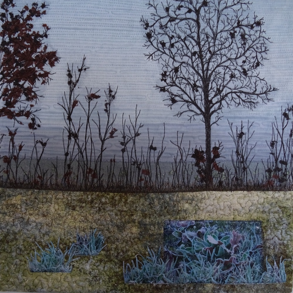This is a stunning piece of work! Such attention to detail in your stitching and the addition of the frosty leaves adds to the feel of the chilly morning. Lovely work, well done.