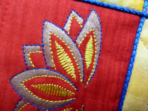 I love your use of the decorative stitches inside the lotus. The use of primary colours makes a bold statement. The quality of your stitching is wonderful.