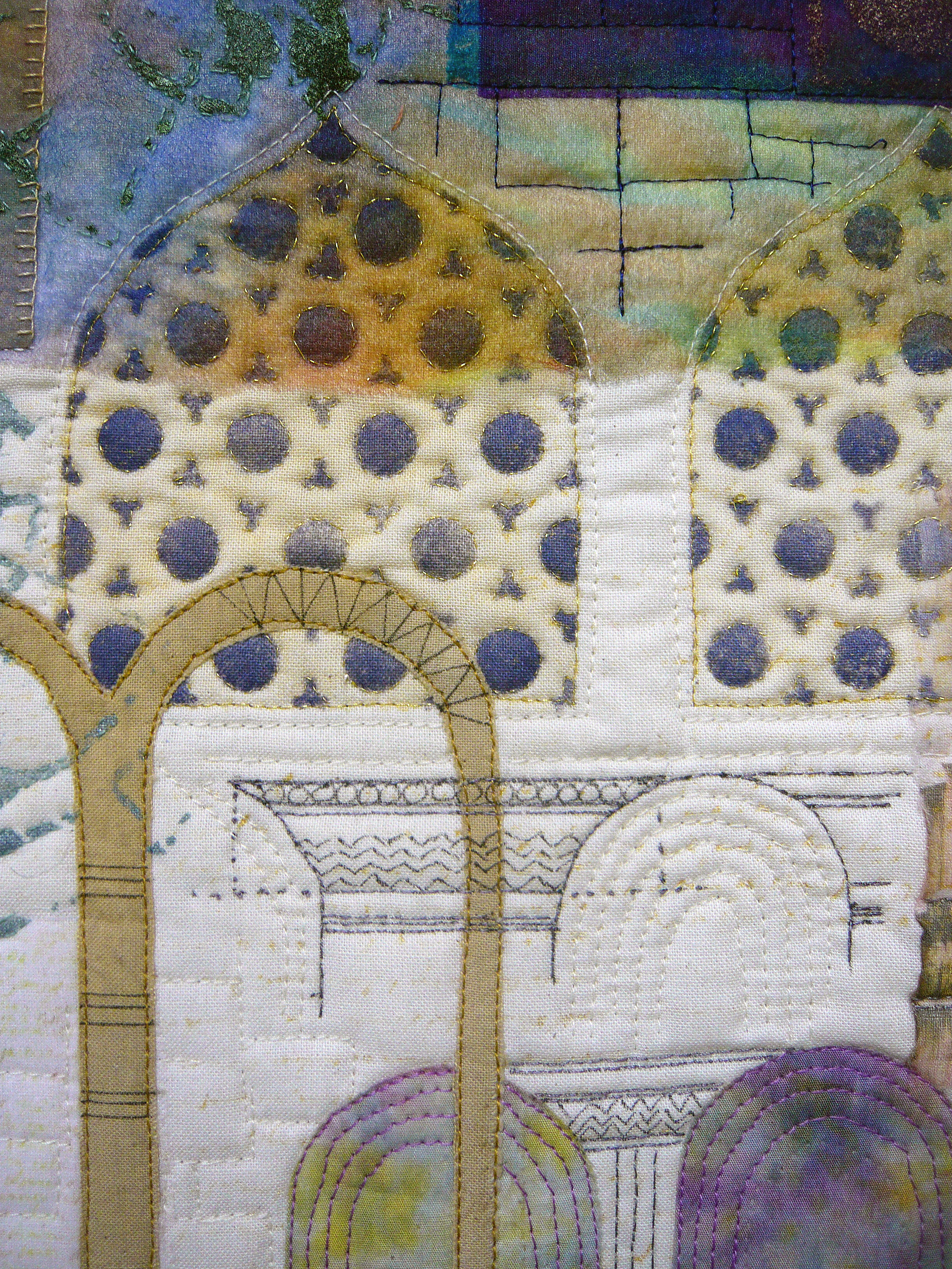 3. Joan your quilt is incredible ! : you may have noticed that I like doors and arches and windows as well as working in a sketchbook : your quilt represents what I like ! the different patches are very interesting by the techniques you used and by the shapes. Everything is well balanced and your work is beautiful.