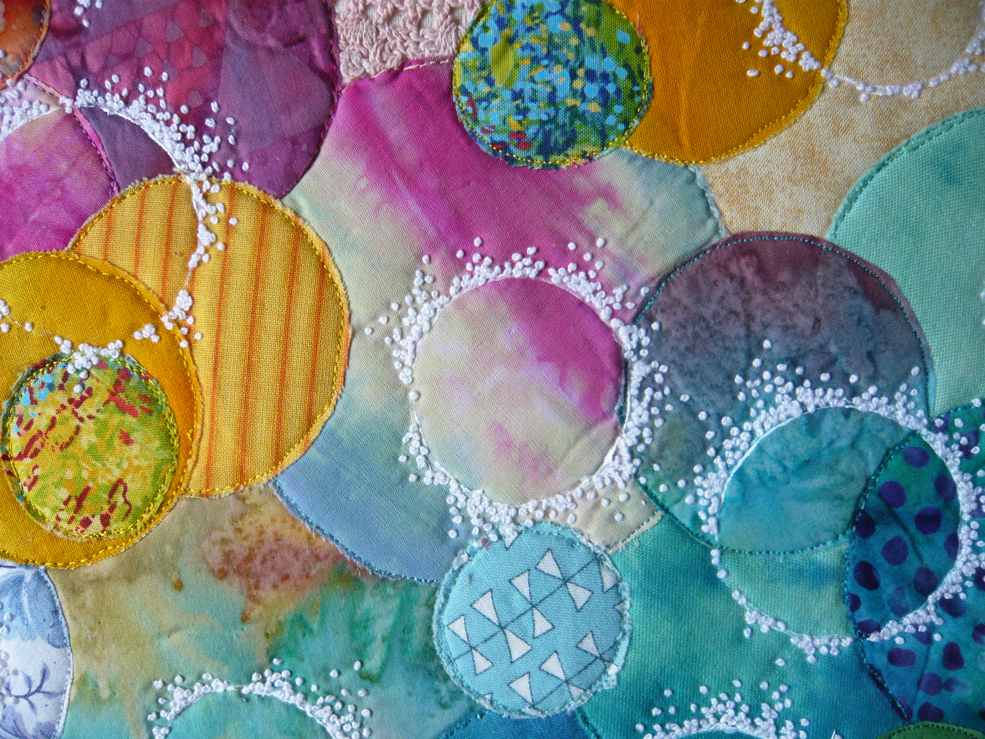 Thank you for the explanation of how you created this colourful vision of circles. The detailed photo really shows how much effort you went to with the hand stitching and layering.