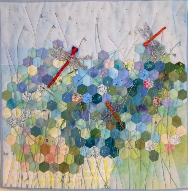 From the delicacy of the work and the colours, I knew straight away it was your work! The hexagons blend into the background fabric so well and I love the way you’ve done the dragonflies! well done!