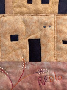 13. You’ve captured the characteristics of the multilevel arquitecture along with the beautiful and harmonious earth tones of the Pueblo dwellings. Love how you incorporated the pottery designs into your quilting and hand embroidery. Lovely!