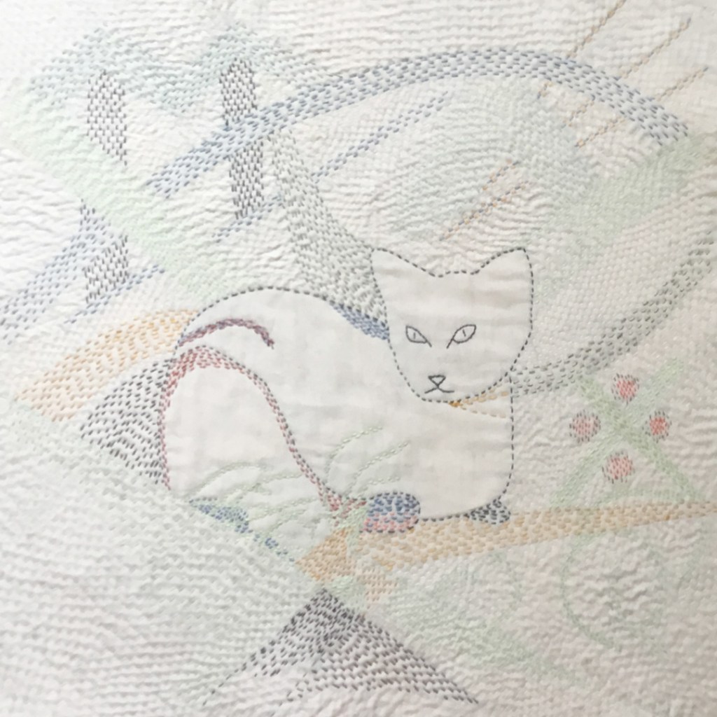 9. Ah such gorgeous stitching! And such beautiful texture. The gentle thread colors somehow emphasize the soft fur of the cat. Well done!
