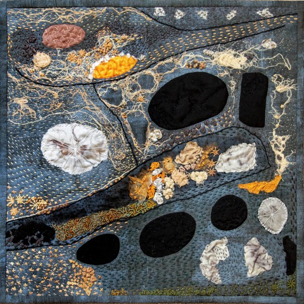 A beautiful work that reminds me of my days at the beach collecting shells and admiring the erosion work of the water and the wind. Excellent use of fabrics, threads and stitching that creates a texture close to your photograph. Well done! Bravo!