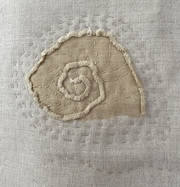 Such a beautiful and delicate composition. Love the tone on tone and meticulous hand stitching. Lovely end to this series. Bravo!