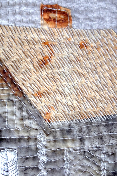10. The natural colours of the piece so define the traditional architecture as shown in the picture. Your choice of fabrics is very effective and the hand stitching is beautifully executed. Lovely piece exuding tranquility and peace.